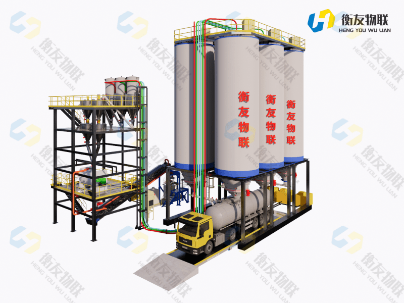 车辆到达装车平台,司机刷卡系统读取车辆预装重量,按启动键开始装车。为防止物料在货箱溢出。系统设计了货箱长度检测及移动小车系统,移动落料小车根据货箱长度移动放料;同时也可以移动车辆进行放料装车。达到设定预装量系统自动停止放料。装车完毕车辆离开,其他车辆上磅准备装车。